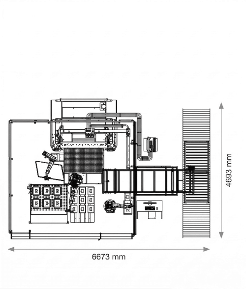 This cell is designed for processing small and medium-sized parts with maximum throughput. The system includes: