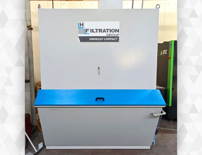 Фильтр для очистки воздуха HFILTRATION Idrodust Compact был установлен у клиента в городе Алматы, Казахстан, вместе с машиной для снятия заусенцев и шлифовки EMC.