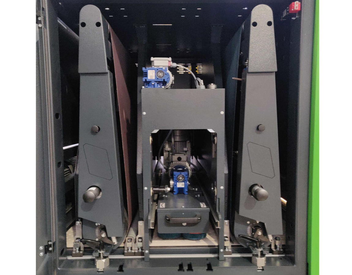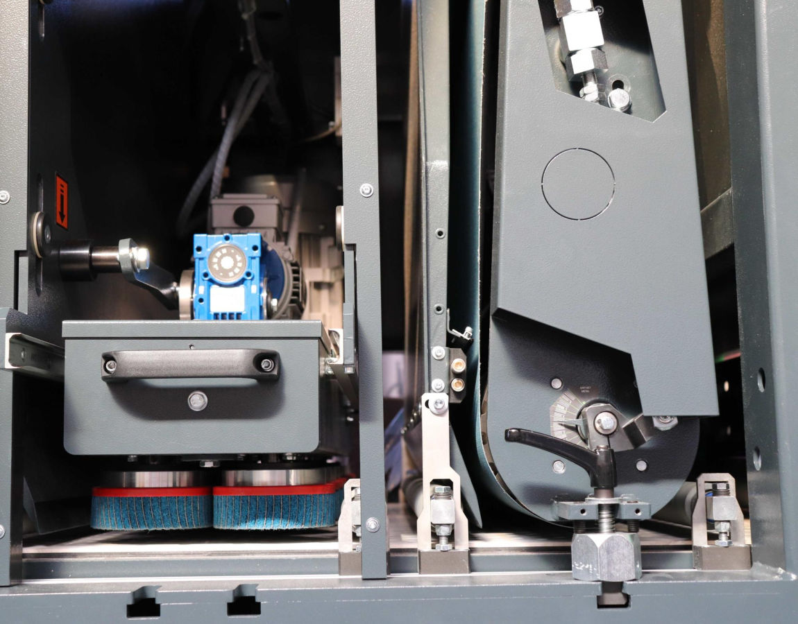 Вакуумный вентилятор размещается снизу, внутри рамы станка, что позволяет оптимизировать эффективность вакуума и снизить уровень шума
